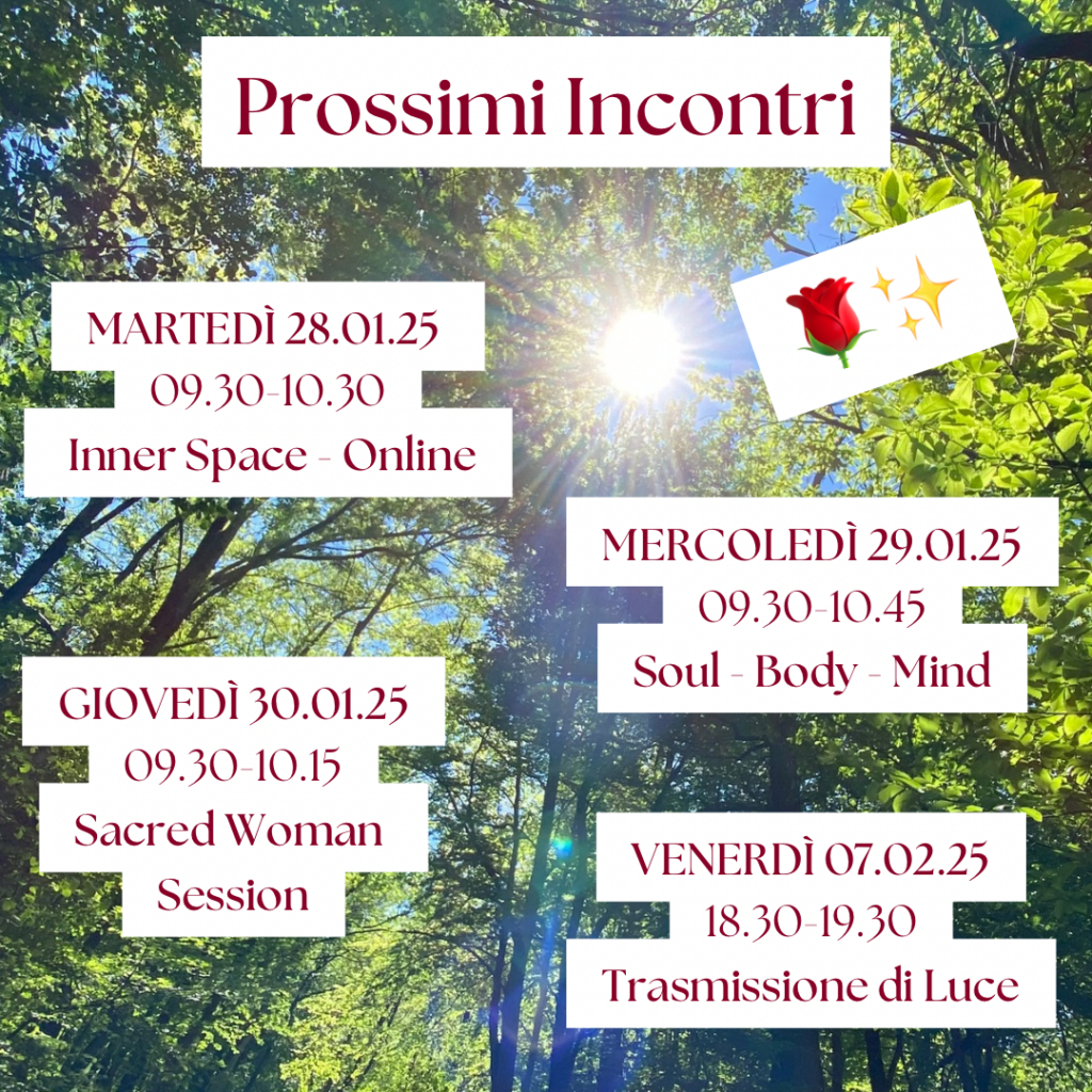 4 incontri nei quali lasciar fluire la nostra energia, liberarci da vecchi schemi, rientrare nella nostra vera forza, nella connessione con la nostra anima, ricevere energie elevate, gioire e celebrare la vita. 🧚🏻‍♀️✨🌹